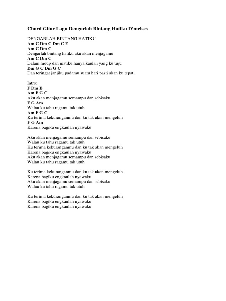 Chord Gitar Lagu Dengarlah Bintang Hatiku D Pdf